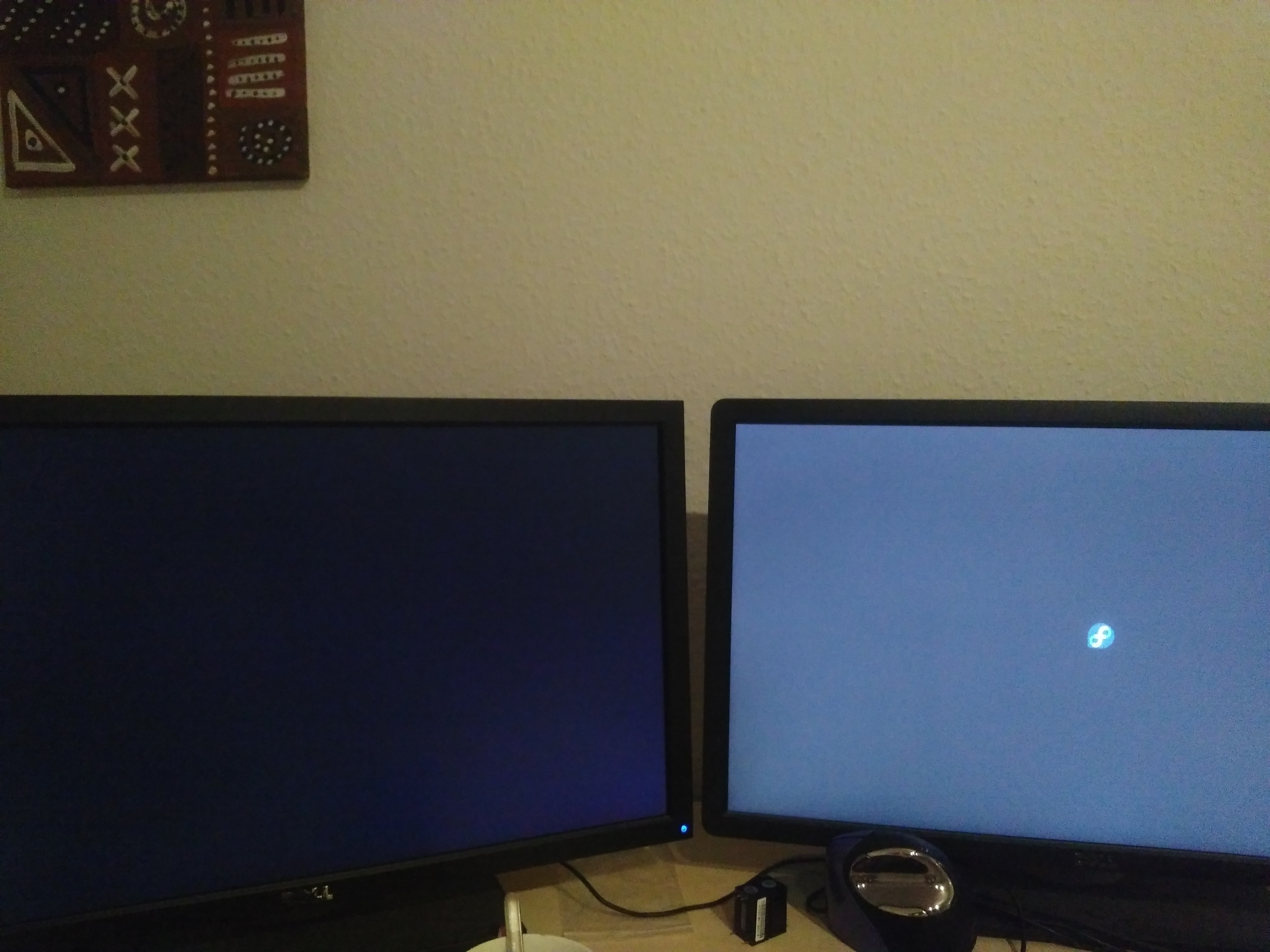(In reply to Stanislav Lisovskiy from comment #4) > Would be nice to attach also Xserver and gdm logs to see if they got > correspondent uevents and got connector states updated properly. > There are no such problems with Ubuntu 16/18 at least with the same kernel. > I've seen a similar bug and the problem was that gdm sometimes simply didn't > initiate modeset for some connectors. Wait, I'm talking about boot, I don't think Xserver/gdm are relevant? This is what happens directly after grub, basically. You don't have anything but initramfs, I'd be very surprised if Fedora was putting Xserver and/or gdm there. Though perhaps I could check what happens if I make the boot non-quiet, and let boot messages scroll through - I suspect they will only show up on one external screen too.