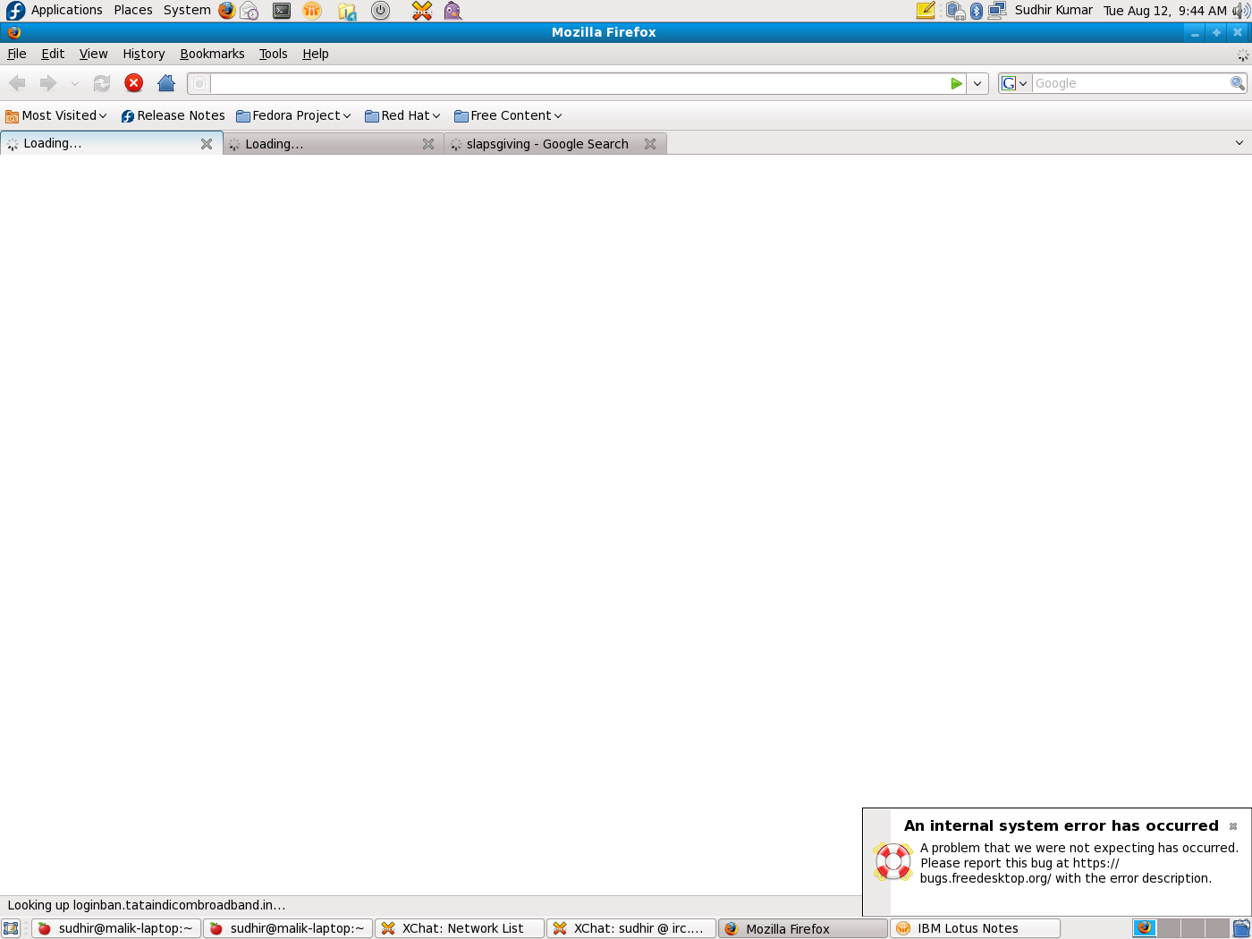 Created attachment 18229 [details] This is the screenshot of the message I get very frequently. "A problem that we were not expecting has occured. Please report this bug at...." is the exact message. I am attaching a screen shot of the message. Thanks Sudhir