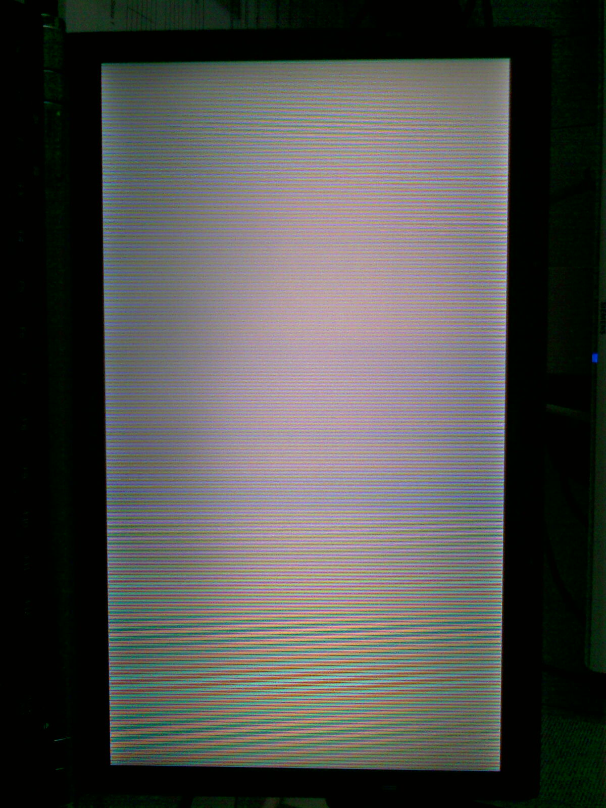 Created attachment 18796 [details] Picture of the red line on the left side The Monitor gets lighted up, then a red line appears at the left side and shrinks to the bottom. Otherwise the screen stays blank. After that the image gets garbled.