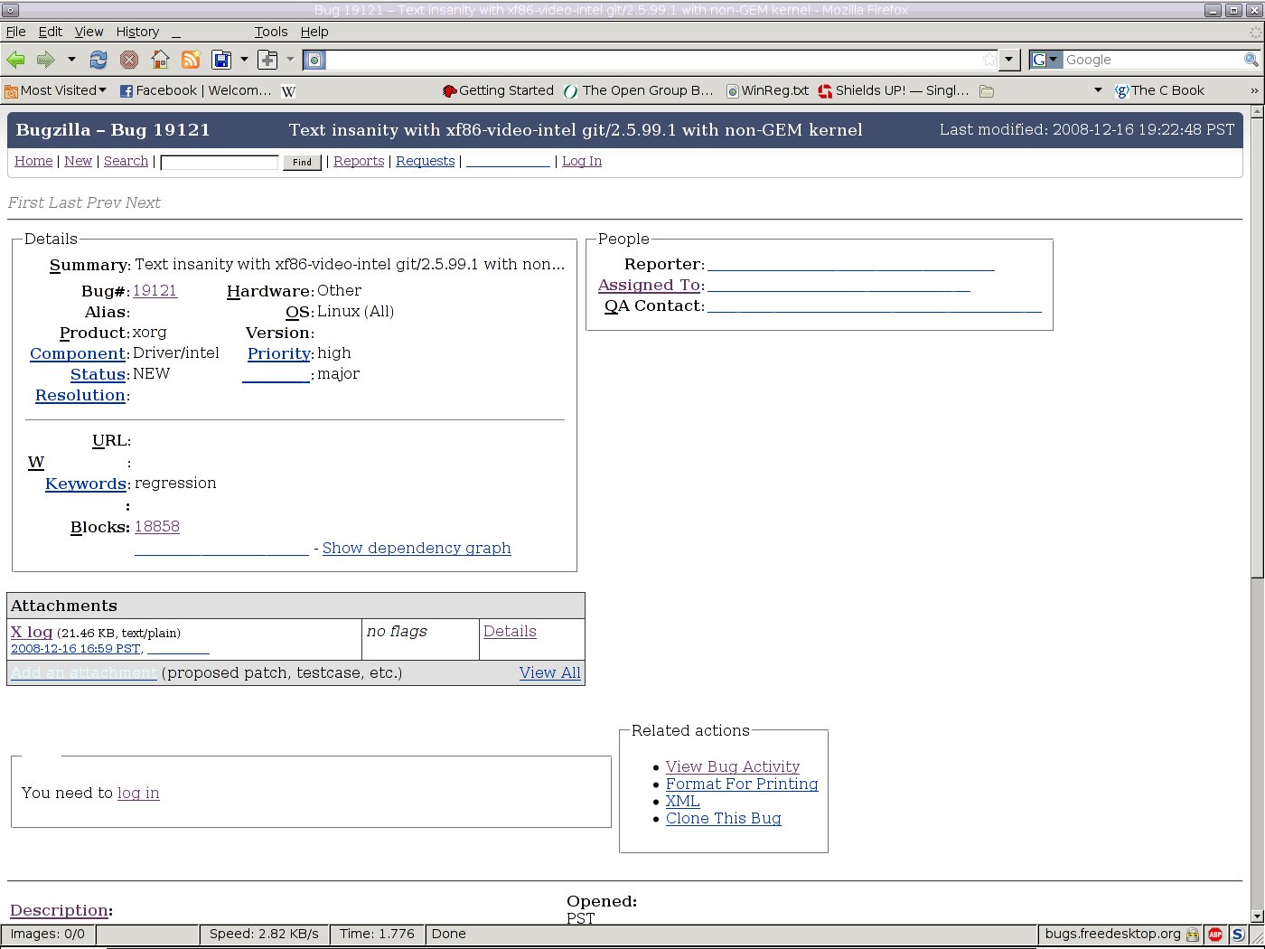 Created attachment 21223 [details] X log When running either xf86-video-intel git master or the recently release 2.5.99.1 on a non-GEM non-KMS kernel (2.6.26, specifically), I get what I think can pretty accurate be called text insanity. Some text doesn't appear, some text is the wrong color, and some text gets fixed when various things are done to it (like selecting it). Insanity abounds.