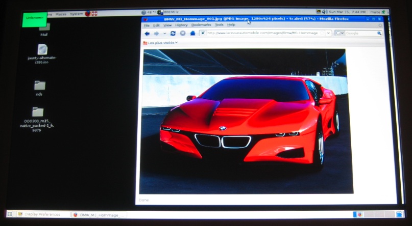 I tried to boot Ubuntu 8.04 (not sure what were the xserver and intel driver versions) but I got the same black screen with it. xf86-video-intel-2.6.99.902 seem to fix the bug (see the xf86-video-intel-2.6.99.902.jpg photo). The only strange behavior I could notice is a small band doubled on the right side of the screen (see the bandbug.jpg photo). The specifications of the machine tells the native resolution is 1366x768 against only 1360x768 for the closest resolution detected by the intel driver. I guess it can be the origin of this small problem. Any idea about this ? Anyway thank you very much for your help guys !