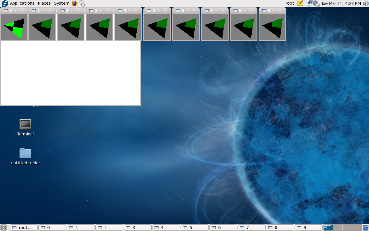 Created attachment 24178 [details] xorg.0.log System Environment: -------------------------- Platform: gm965 Arch: x86_64 OSD: Fedora release 10 Libdrm: (master)2e2e8575b1ed4703653a72ac2b60b75316c388d7 Mesa_stable: (mesa_7_4_branch)a8528a2e8653b5237c1d1d66fe98c6e031d007f9 Xserver:(server-1.6-branch) 60c161545af80eb78eb790a05bde79409dfdf16e Xf86_video_intel: (2.7)238c2c40afd9f8b61479b8640d53f20d52fd7ddf Kernel: (for-airlied)dc529a4fe1ae4667c819437a94185e8581e1e680 Bug detailed description: -------------------------- With UXA, start X,then run manywin n(n>1), just the first window render correctly. all windows should have the same color and brightness,but the other windows appears different,as is shown in the attached screenshot1, and screenshot2 is the correct rendering with software. Reproduce steps: ---------------- 1. xinit& 2.run mesa/xdemos ./manywin 10
