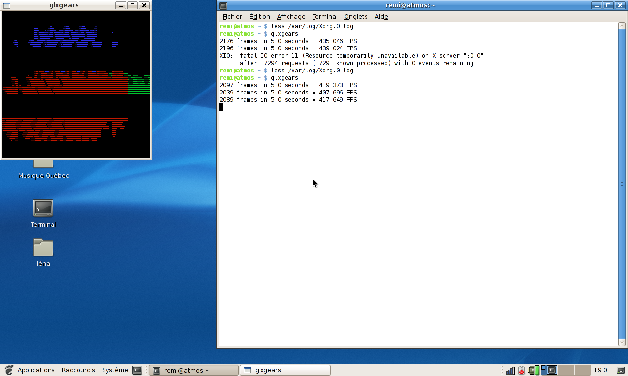 Created attachment 25717 [details] Screenshot of the desktop with glxgears running (no compositor) I'm putting this in the 2D driver because there are errors in the X log... current X stack : - libdrm : 11b60973bca1bc9bbda44be4c695e22d28d8ca4a (2.4.9 + 4 patches from master) - xf86-video-intel : 77153d690a3673fdee7bef8e567816b754c43081 (2.7 branch) - xorg-server : 1.6.1 without patches - mesa : 7.4 branch as of last week - kernel : 2.6.30-rc4-00002-g79f11c1 (drm-intel-next branch) So far, everything seems to work ok (including Xv) and the perceived performance is really good. Screenshot shows the bug pretty clearly. Thanks