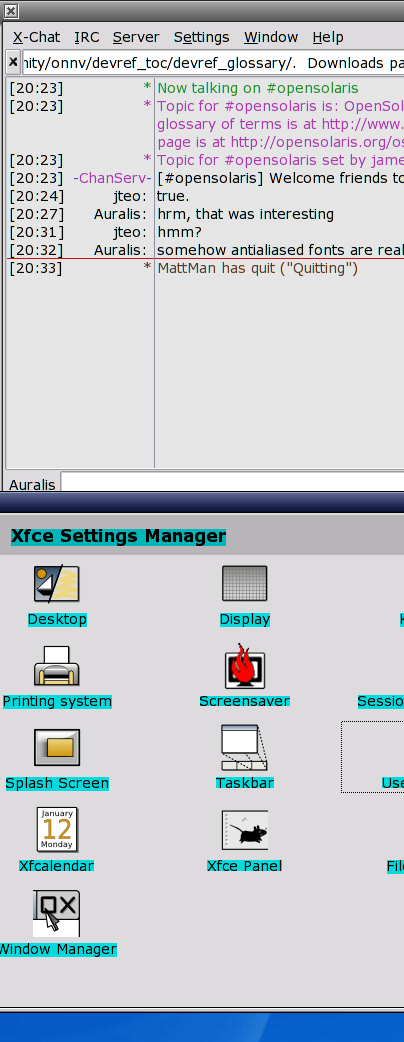 Antiliased fonts are rendered over a green background. see screenshot: http://www.gods-inc.de/barbie/solaris/funkytext.png Other information: Cairo 1.0.0 gtk+ 2.8.2 glib 2.8.1 pango 1.9.1 atk 1.10.1 glitz 0.4.4 SunOS hel 5.10 Generic_118822-08 sun4u sparc SUNW,Sun-Blade-1000 XVR-1000 Graphics board Software compiled with Sun Studio 10