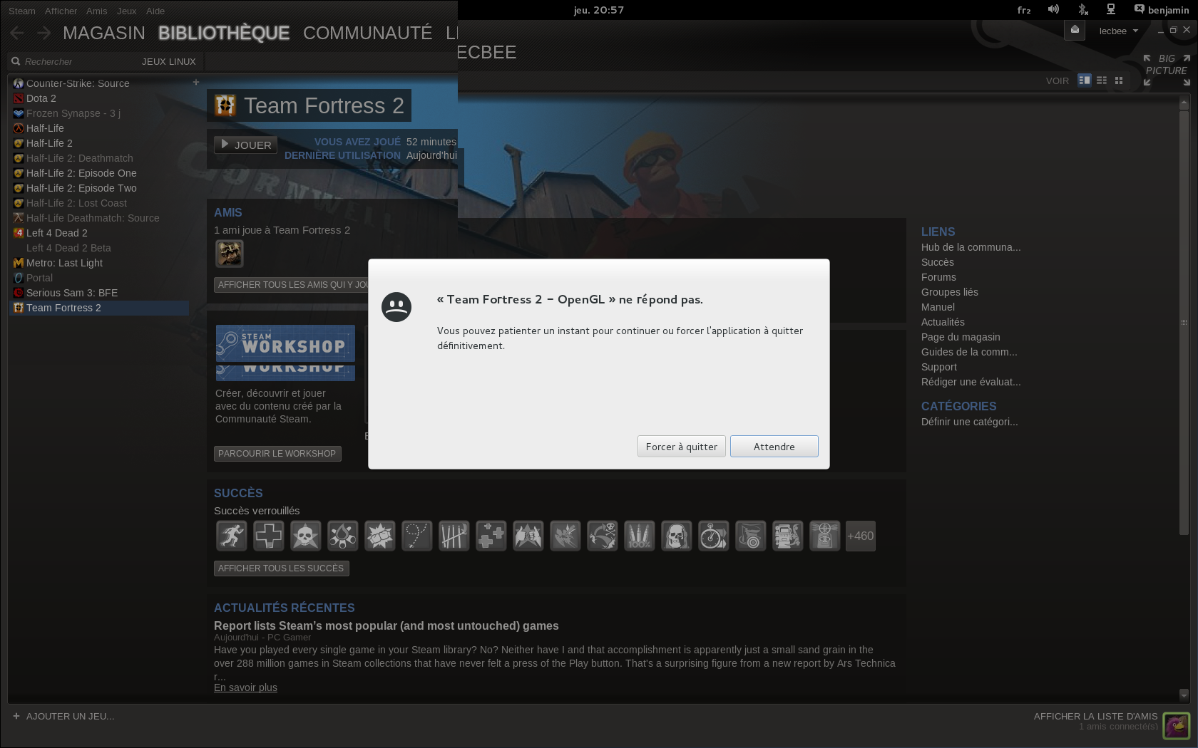 Created attachment 97529 [details] Gnome proposing to quit the app All my Source engine games (Team Fortress 2, Left 4 Dead 2, Half-Life², Counter-Strike: Source) doesn't work anymore since commit: commit: 70cf6639c331342619e65c46db925d115bf51920 gallium/radeon: create and return a fence in the flush function author: Marek Olšák <marek.olsak@amd.com> date: 2014-04-16 12:02:51 (GMT) Reviewed-by: Christian König <christian.koenig@amd.com> Since this commit, when I launch one of this game, the screen stays black or it will not launch at all. Finally I got a message from Gnome proposing to wait or quit the app (cf. screenshot). Config: kernel 3.13.9-100.fc19.x86_64 libdrm 2.4.53-1.fc20 AMD Evergreen (Radeon HD 5850) OpenGL renderer string: Gallium 0.4 on AMD CYPRESS Build config: autogen.sh --with-gallium-drivers=r600 --with-dri-drivers= --enable-texture-float --disable-dri3 --disable-r600-llvm-compiler --disable-gallium-llvm --enable-32-bit CFLAGS="-O2 -m32" CXXFLAGS="-O2 -m32" --libdir=/usr/lib