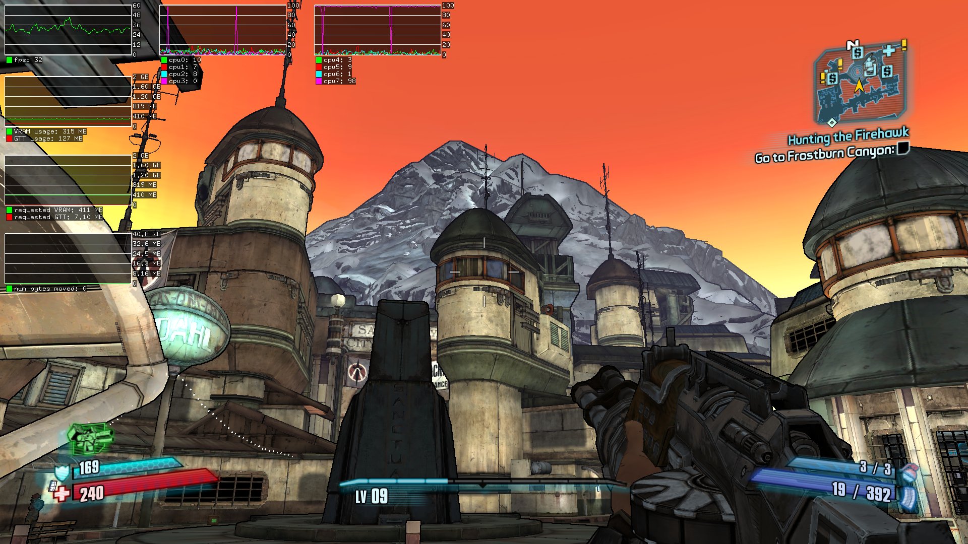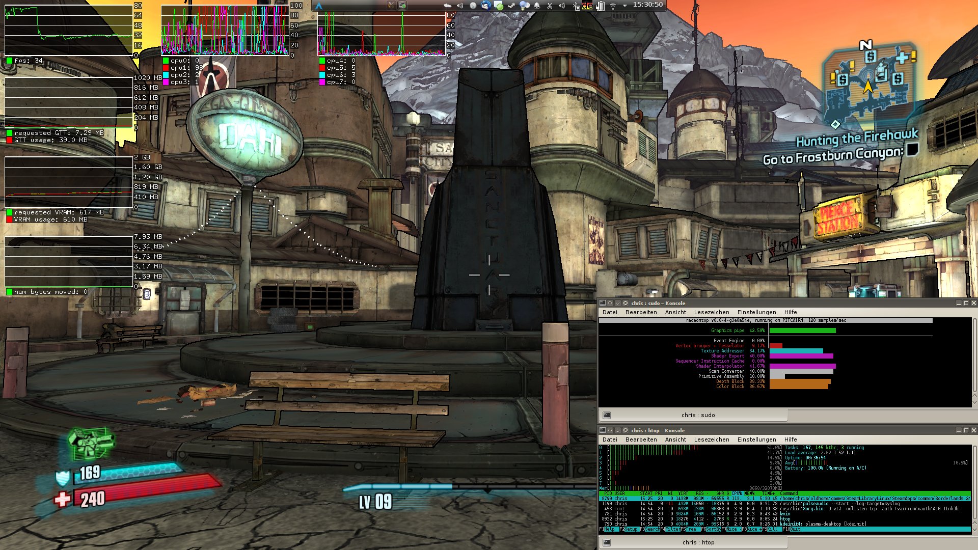 Created attachment 107595 [details] GALLIUM_HUD="fps,VRAM-usage+GTT-usage,requested-VRAM+requested-GTT,num-bytes-moved;cpu0+cpu1+cpu2+cpu3;cpu4+cpu5+cpu6+cpu7" (In reply to Michel Dänzer from comment #5) > I don't notice anything using obviously too much CPU in your profile. Can > you get a screenshot with GALLIUM_HUD like in bug 84570? For the screenshot I pinned the game to the cpus 3,7 with taskset to stop it from polluting the graphs so much when jumping between cpus. Didn't really decrease or increase the performance much. I really don't know right now... When the game loses the input focus, it pauses the game and the game rendering itself is not updated anymore I think. The cpu usage will drop from 112-114% cpu usage to 100% cpu usage and the fps go up to 60 fps. When the game is focussed again, it unpauses, and then it's again low performance.
