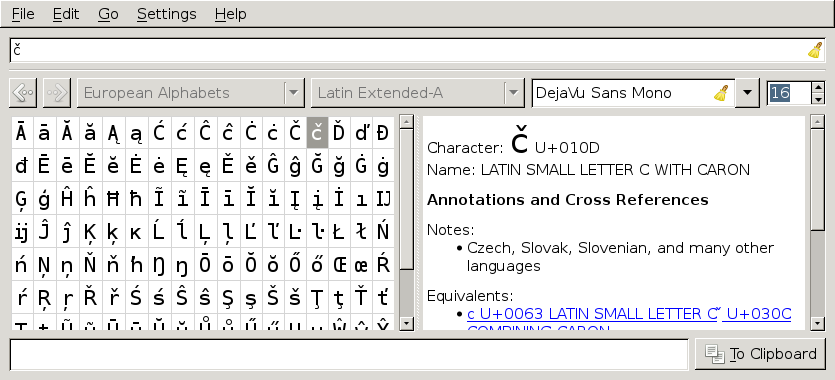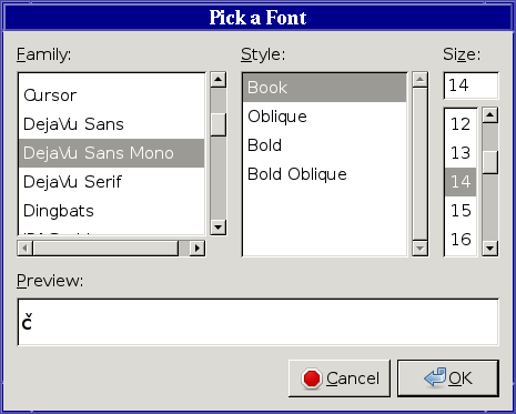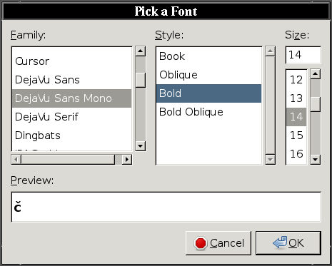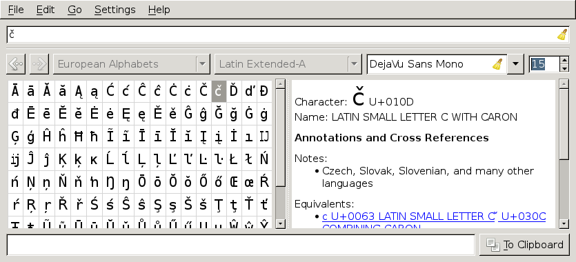 Created attachment 115990 [details] c with caron with size 14 pt style book - does show the problem in LXTerminal