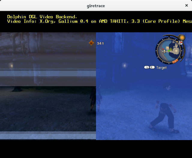 Iff a character is in specific areas some textures on him are not rendered. In the entry of colony 9 is such an area. The textures are rendered properly on the Intel GPU. There are screenshots, a fifolog and an apitrace at the end of the linked bugreport. The problem appears in Debian Jessie, Sid and mesa-git the last time checked, which was 9 days ago. I compiled mesa-git with CFLAGS = -g -O2 -Wall -std=c99 -Werror=implicit-function-declaration -Werror=missing-prototypes -fno-strict-aliasing -fno-builtin-memcmp -DDEBUG and set $ export LIBGL_DEBUG=verbose $ export MESA_DEBUG=1 $ export EGL_LOG_LEVEL=debug before running dolphin. Running dolphin with the game until the issue appears gives the following output $ dolphin-emu Gtk-Message: Failed to load module "canberra-gtk-module" libGL: screen 0 does not appear to be DRI3 capable libGL: pci id for fd 22: 1002:679a, driver radeonsi libGL: OpenDriver: trying lib/tls/radeonsi_dri.so libGL: OpenDriver: trying lib/radeonsi_dri.so libGL: Can't open configuration file /home/user/.drirc: Arquivo ou diretório não encontrado. libGL: Can't open configuration file /home/user/.drirc: Arquivo ou diretório não encontrado. libGL: Using DRI2 for screen 0 I'm sorry, I don't know how to write a simple GLUT-based test program.