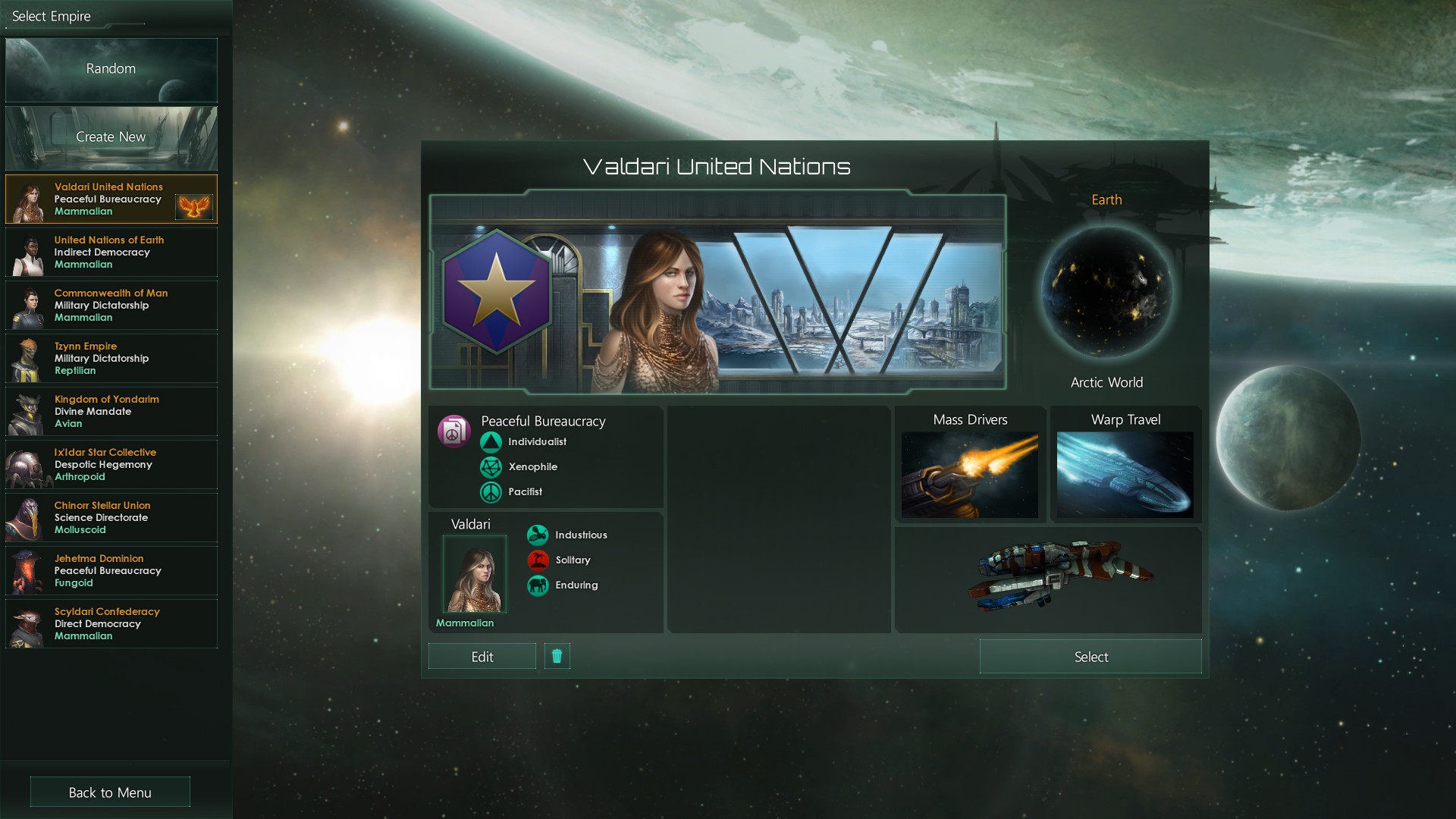 Alright, I finally got my rig back setup with the right mesa options and everything and have new screenshots and a new API trace. Attaching these now. I'm including windows screenshots from my wife's PC as "how it should look". New Game screen definitely does not look like the windows version but it looks to me like everything looks the same in-game now (at least for Earth). The new api trace is build on the same system with radeonsi and build options: ./configure CC="gcc -m32" CXX="g++ -m32" --prefix=$HOME/install/i386/ --enable-driglx-direct --enable-gles1 --enable-gles2 --enable-glx-tls --with-dri-driverdir=$HOME/install/i386/lib/dri --with-egl-platforms='drm x11' --with-gallium-drivers=radeonsi --enable-texture-float --host=i686-pc-linux-gnu --build=x86_64-pc-linux-gnu It was run with(stellaris wouldn't listen to LD_LIBRARY_PATH): LIBGL_DRIVERS_PATH=/home/mordocai/install/i386/lib/dri/ /home/mordocai/git_repos/apitrace/build32/apitrace trace .steam/steam/steamapps/common/Stellaris/stellaris Adding attachments now.